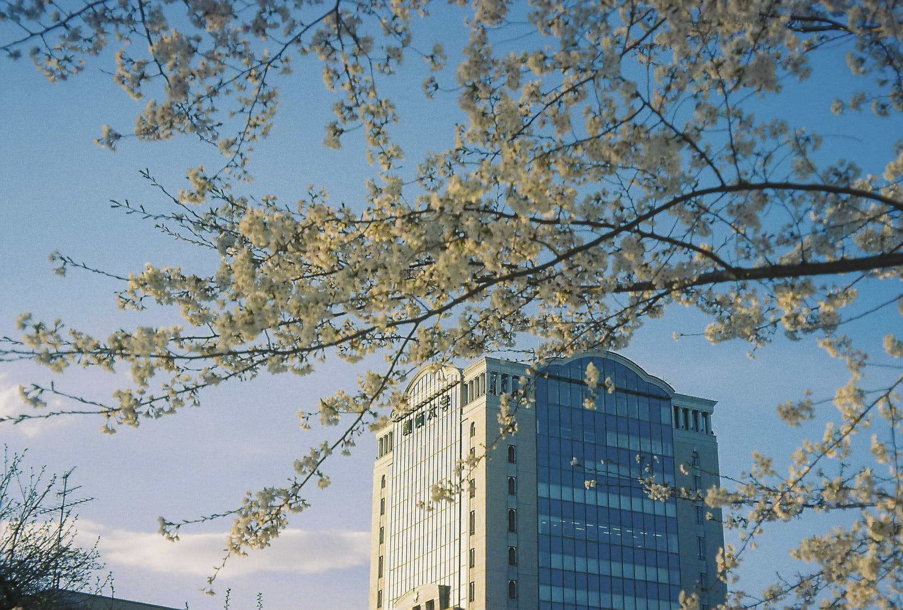 創価大学 本部棟の春