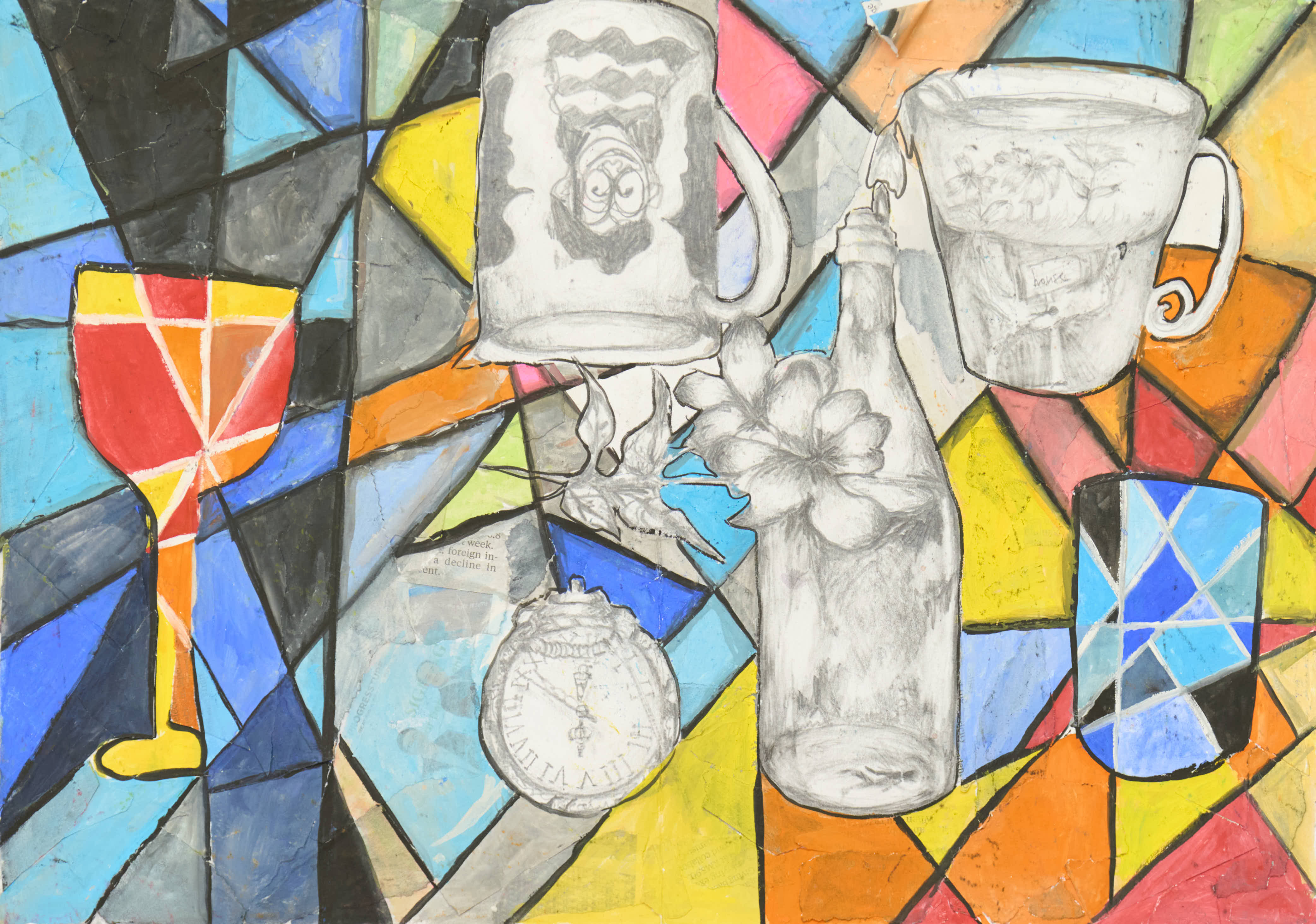 紙に描いたミクストメディア
